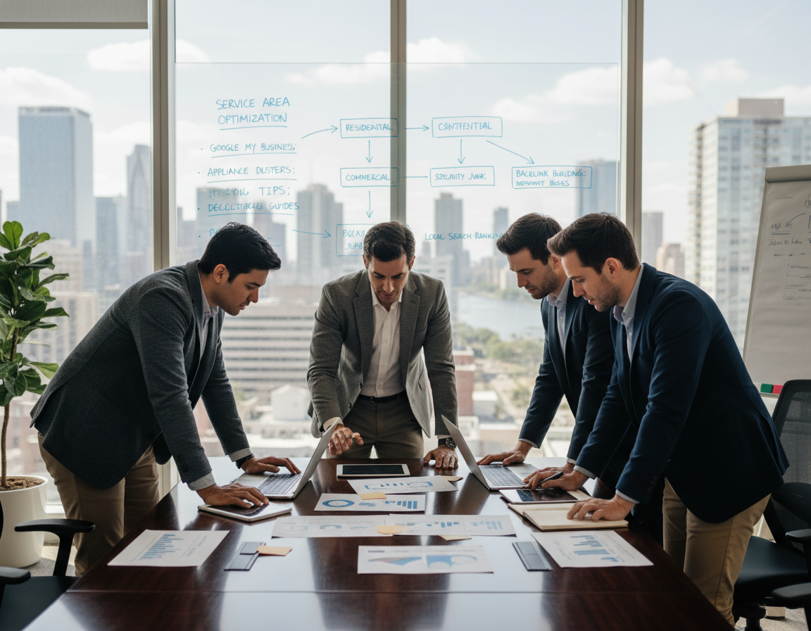 The service foundation starts with technical website fixes and mobile speed optimization. Service-specific landing pages and local schema ensure search engines display the right pages to nearby customers.